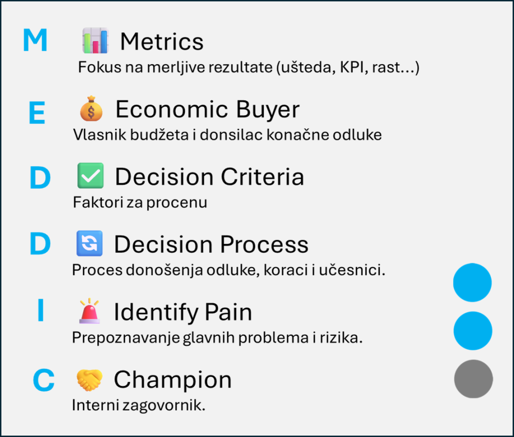 • MEDDIC metodologija za kvalifikaciju B2B prodajnih prilika.